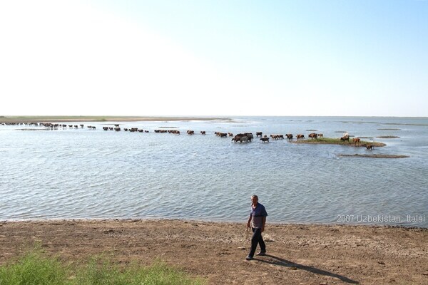 그래서 이곳 주민들 대부분은 농작물보다는 소를 키운다. 저수지에 펼쳐진 소들의 행렬은 주민들이 소떼를 끌고 건너편 목초지로 데려가는 장면이었다. 아침마다 한 집에서 여러 이웃들의 소들을 모아 저수지를 건너고, 저녁이 되면 몰고 돌아오는 것이 일과다. 그러나 왕년의 어부들은 아직도 바다를 잊지 못하고 있다. 이런 이들에게는 아무다리야의 유산인 저수지에서 낚시질을 하는 것이 큰 소일거리다.