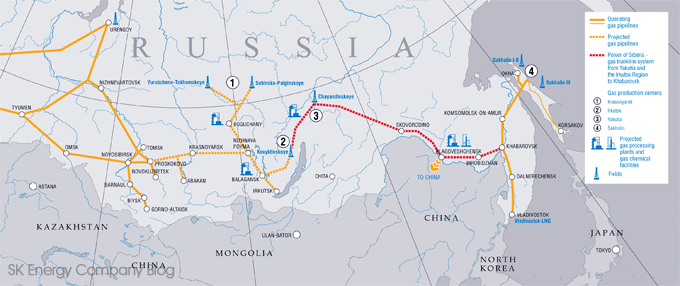 중국에 그만큼의 천연가스를 팔기 위해 러시아는 ‘시베리아의 힘’ 프로젝트를 추진하고 있습니다. 550억 달러(약 60조원)가 투입될 ‘시베리아의 힘’은 시베리아의 야쿠치아•코빅친스크 2개 가스전과 중-시베리아 간 파이프라인을 포함하는 대규모 에너지 개발계획입니다.