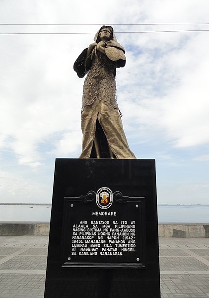 ‘필리핀 위안부’. 마닐라 록사스 거리의 베이워크에 전시됐던 동상이다. 2017년 12월 8일 필리핀국가역사위원회(NHCP)와 시민단체들의 지원 속에 만들어졌다. 우리의 ‘평화의 소녀상’처럼, 이 동상도 2차 세계대전 당시 일본군 성노예로 강제동원됐던 여성들을 기억하고 전쟁범죄를 되새기기 위해 세워졌다.