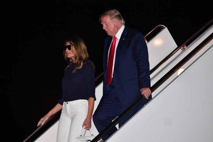 지난해 6월 싱가포르에서 ‘역사적인’ 북미 정상회담을 할 때 트럼프는 “퍼스트레이디도 동행하고 싶었지만 의사가 비행기 여행을 자제하라고 해서 못 왔다”고 직접 설명한 적 있다. 올 2월말 베트남 하노이에서 열린 2차 북미 정상회담 때에도 멜라니아는 동행하지 않았다. 6월의 세번째 만남 때에도 멜라니아가 아닌 트럼프의 딸 이방카와 사위 재러드 쿠슈너가 함께 했다.