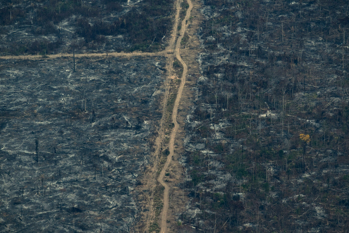 보우소나루는 원주민 보호구역이 너무 많다고 주장하지만, 이번 산불은 보호구역이 왜 필요한지를 보여줬습니다. 아래 사진은 알타미라의 카야포 원주민들이 사는 멩크라그노티 보호구역 부근을 찍은 사진입니다. 왼쪽 숲은 다 타버렸지만 울타리가 둘러쳐진 보호구역 쪽 숲지대는 파랗게 남아 있습니다.