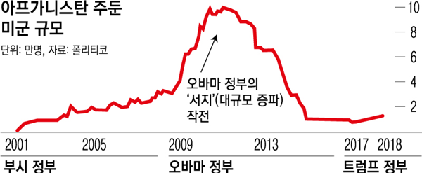 오바마는 아프간 철군을 공약했지만 퇴임 전까지도 약속을 지키지 못한 채 1만명 규모의 병력을 남겨뒀다. 그동안 미군 2400여명을 비롯해 미국 주도로 결성된 다국적군 3500여명이 숨졌다. 미군정을 거쳐 출범한 아프간 정부의 치안유지군 약 6만2000명, 탈레반 전투원 6만~6만5000명이 사망한 것으로 추산된다. 아프간 민간인 희생자도 4만명에 육박하는 것으로 민간기구들은 추정한다.