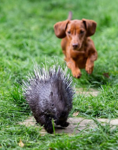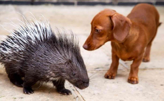 아기 호저(豪猪)가 엄마한테 버림받았다. 그런데 뜻밖의 친구가 나타났다. 닥스훈트 한 마리가 어린 호저 곁에서 외로움을 달래주는 친구가 된 것이다.