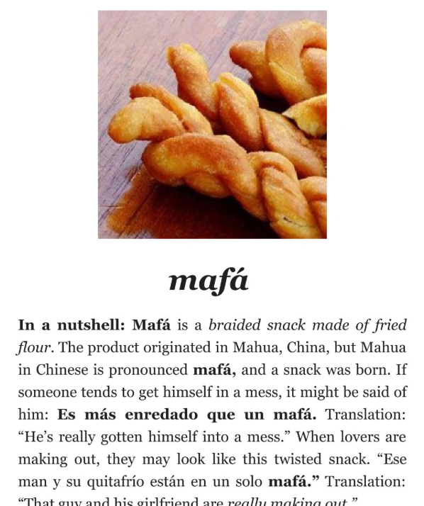 The snack is extremely popular in Panama, where it has been adopted as a national dish and is referred to as mafá. It was brought over by Chinese immigrants during the nineteenth century.