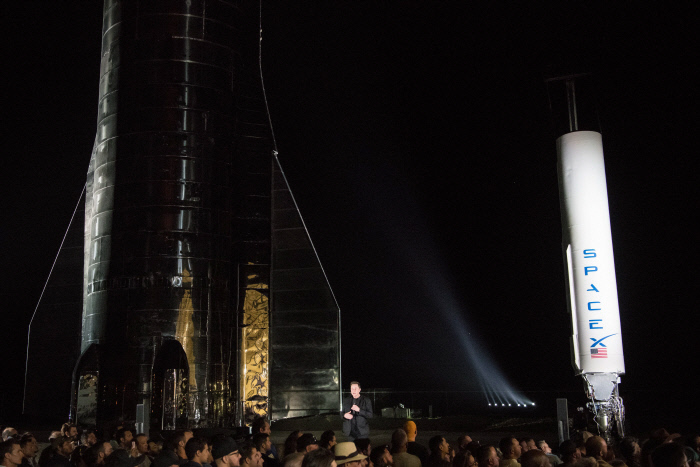머스크는 이날 미국 텍사스 남부 보카치카에 있는 스페이스X의 발사시설에서 수직 이착륙을 할 수 있는 우주선이 빠르면 다음달에 첫 발사될 것으로 기대한다며 스타십 모델을 공개했다. 머스크는 “화성과 달뿐 아니라 태양계 어디든 갔다올 수 있도록 설계했다”고 강조했다.