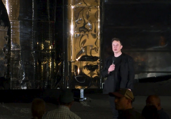 스페이스X 최고경영자(CEO) 일론 머스크가 28일(현지시간) 화성까지 갔다 올 수 있는 유인 우주선 ‘스타십’ 시제품을 공개했다.