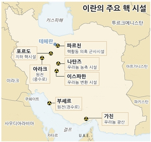 2015년 이란이 유엔 안전보장이사회 5개 상임이사국 및 독일(P5+1)과 합의한 포괄적 공동행동계획(JCPOA)은 이란의 핵 시설과 핵 활동을 제한하면서 원심분리기 1만9000개 중 3분의 2 감축, 최소 15년간 우라늄 농축 제한, 국제 사찰단의 접근 보장 등을 담았다. 특히 이란 내 여러 핵시설 중 포르도 핵시설에서는 ‘15년 간 우라늄 농축이나 관련 연구를 하지 않으며 핵분열 물질도 두지 않는다’고 명시했다. 나탄즈의 핵시설에서만 10년 동안 우라늄을 농축할 수 있게 허용하되 10년 동안 매년 관련 연구계획을 IAEA에 보고한다는 조항을 뒀다.