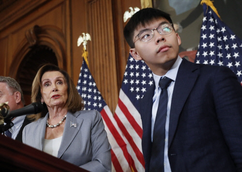 반면 의회는 ‘홍콩 지지’를 명확히 하고 있다. 홍콩 청년지도자 조슈아 웡이 9월 18일 워싱턴의 의사당에서 연설한 뒤 낸시 펠로시 하원의장 등을 만났고, 중국은 거세게 반발했다. 하원은 10월 15일 홍콩인권·민주주의법을 만장일치로 통과시켰다. 이달 14일에는 상원에 비슷한 법안이 제출됐다.