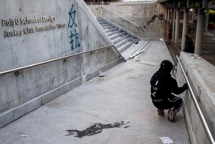 이공대가 봉쇄된 지난 15일 사우스차이나모닝포스트(SCMP) 여론조사를 보면 대학과 도로를 점거하는 시위에 대해 주민 54%는 ‘지지한다’고 했고, 46% 반대했다. 거의 반반으로 갈린 셈이다. 또 하나 눈길을 끄는 것은 중문대 커뮤니케이션센터의 여론조사다. 지난달 조사에서 ‘보편적 참정권’을 요구하는 목소리는 80%로, 그 전 달의 74%에서 늘어났다. 시위 양상과 관련해 ‘경찰이 지나친 무력을 행사한다’는 사람은 70% 정도로 지난 몇 달 간의 조사에서 거의 변화가 없었다. 하지만 ‘시위대가 지나친 폭력을 쓰고 있다’는 사람 역시 40%로 거의 고정적이었다.