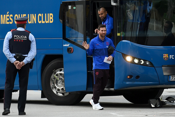 18일(현지시간) 캄프누 앞에는 경찰차들이 늘어섰습니다.
