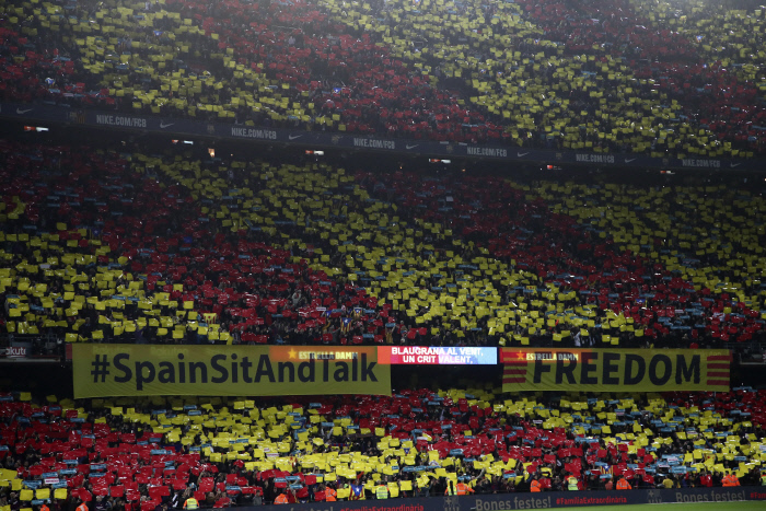 카탈루냐 분리독립을 주장하는 이들이 경기장 앞에서 ‘데모크라틱 쓰나미’라는 이름의 대규모 집회를 열 예정이라고 이미 밝혔기 때문이죠.