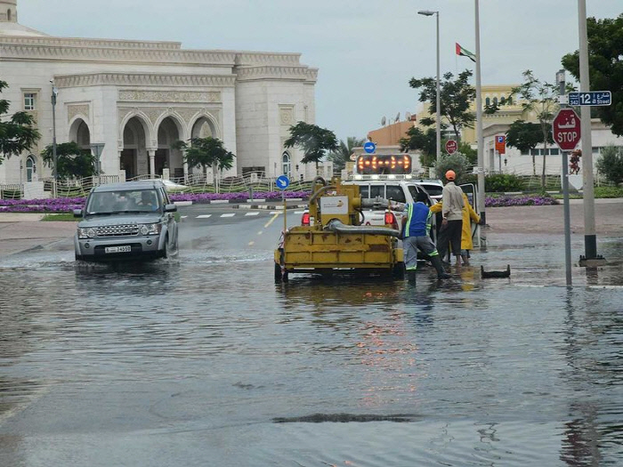 사막의 도시 두바이. 야자수 모양을 한 인공섬과 마천루들로 유명한 아랍에미리트연합(UAE)의 두바이 거리 곳곳이 이달 중순 물에 잠겼다. 거센 바람에 거리의 야자수 화분들이 쓰러지고 도심 전광판에는 교통안전 경고들이 떴다고 걸프뉴스는 전했다. 통상 두바이는 연간 강수량이 75mm에 불과한데, 지난 10일부터 15일 사이에 이례적으로 많은 비가 내리고 강풍이 불면서 벌어진 일이다. 아부다비와 알다프라 지역에도 천둥번개가 치고 비가 쏟아졌다.