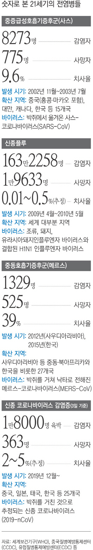 21세기의 전염병들… 신종 코로나도 '팬데믹' 될까