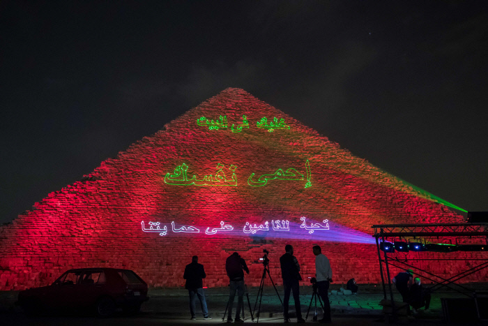 이집트 피라미드에 “집에 안전히 있으라”는 코로나19 안전메시지가 빛으로 새겨졌다.