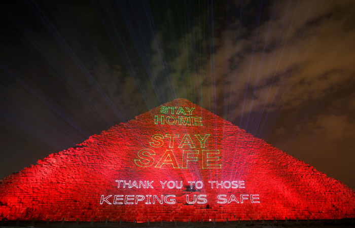 이집트 피라미드에 “집에 안전히 있으라”는 코로나19 안전메시지가 빛으로 새겨졌다.
