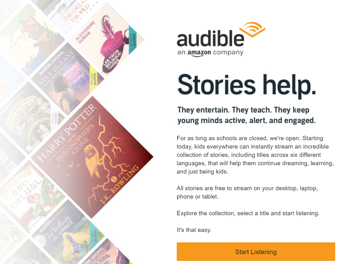 아마존 계열인 IMDb TV는 ‘슈렉(Shrek Forever After)’을 비롯해 가족들이 함께 볼 수 있는 영화들도 일부 무료로 보여주기 시작했다. 스트리밍서비스인 플렉스는 미국에서 석 달 동안 돈을 받지 않기로 했다. 애플 북스는 인기 콘텐츠인 <처음 읽는 OOO> 시리즈 몇 개를 무료화했다고 미국 언론들은 전했다. 월마트 산하의 부두(Vudu) 서비스도 <토마스와 친구들>을 비롯한 아동용 TV프로그램과 영화들의 이용료를 일시적으로 없앴다.