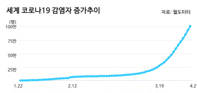 중국 후베이성 우한에서 신종 바이러스에 의한 것으로 보이는 폐렴 환자가 공식 확인된 것은 지난해 12월 31일이었다. 그 후 석 달, 코로나19는 세계로 퍼져 감염자가 3일(한국시간) 100만명을 넘어섰다.