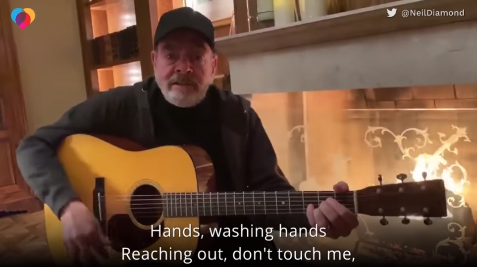 미국 원로 가서 닐 다이아몬드는 직접 자신의 히트작 ‘스위트 캐롤라인’을 개사했다. 손을 씻으라는 것을 비롯해 미국 질병통제예방센터(CDC)의 코로나19 위생지침을 담아, 직접 기타를 치며 노래하는 모습을 유튜브에 공개했다.