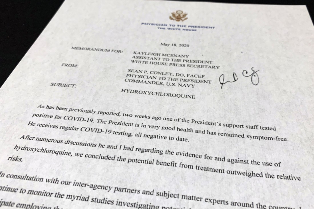 그러나 코로나19 감염자도 아닌 사람이 약을 먹는 것은 별개의 문제다. 트럼프 대통령이 HCQ을 복용하며 스스로를 ‘임상시험’할 수 있도록 해준 결정적인 조언자는 주치의 콘리로 알려졌다. 트럼프 대통령은 콘리에게 이 약을 먹어도 되겠느냐고 물었더니 “원한다면 먹으라”는 대답을 들었다고 밝혔다. 주치의 스스로 “대통령은 건강한 상태”라면서 허가받지 않은 약을 코로나19 ‘예방용’으로 복용하도록 했다는 것은 논란거리다.