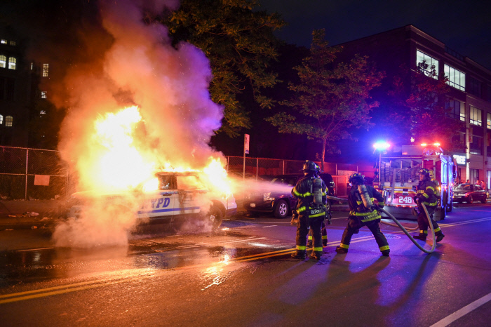 30일(현지시간) 뉴욕과 워싱턴 등 미국 전역에서 경찰의 폭력을 규탄하는 시위가 벌어졌다. 25일 미네소타주 미니애폴리스에서 플로이드가 숨진 이후 닷새 째 시위가 이어지고 있는 것이다. 시위는 대부분 도시에서 평화로운 행진으로 시작됐지만 몇몇 지역에서는 무장경찰과의 물리적 충돌과 약탈, 방화로 격화됐다.