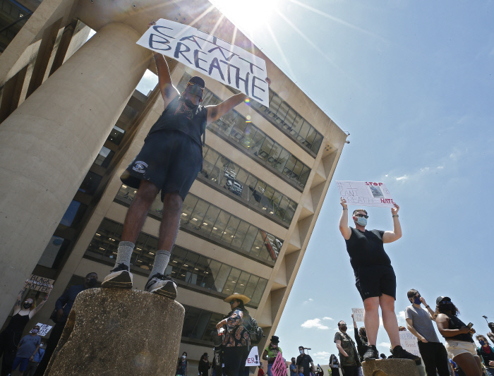 미국 흑인 남성 조지 플로이드가 백인 경찰에 9분 간 눌려 숨져가면서 마지막으로 남긴 말이다. 이 말이 현재 미국 흑인들의 현실을 보여주는 구호가 돼 미국 전역을 덮었다. 콜로라도주 덴버에서는 시민들이 9분 동안 바닥에 엎드려 ‘숨을 쉴 수 없다’고 외치는 항의 시위가 벌어졌다.