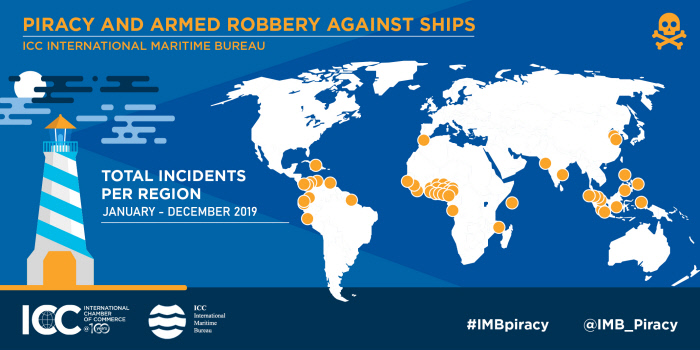 ‘해양법에 관한 유엔 협약’에 따르면 한 국가의 영해에서 선박을 습격하는 것은 무장강도 사건이며 공해상에서 선박을 공격하는 것만 해적 행위에 해당된다. 하지만 통칭 바다 위에서 일어나는 사건들을 모두 해적 피해로 분류한다. 아시아에서는 말레이시아와 인도네시아 사이 말라카 해협, 라틴아메리카에서는 카리브해와 베네수엘라 앞바다가 해적 공격으로 악명 높다.