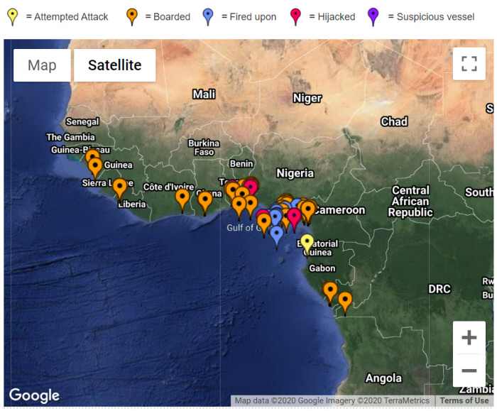한때 세계를 떠들썩하게 했던 동아프리카 아덴만 일대의 소말리아 해적 사건은 한국을 포함한 국제 공동작전으로 많이 줄었으나 대륙 건너편 서아프리카의 기니만에서 몇년 새 해적이 기승을 부리고 있다. 남쪽 앙골라에서 북쪽 세네갈까지 6000km에 걸친 해안선을 따라 20개국이 위치하고 있는데 해적 공격이 잦은 곳은 그중 가나, 토고, 베냉, 나이지리아, 카메룬 일대다. 국제해사국(IMB)에 따르면 지난해 기니만에서는 선원 121명이 납치돼, 세계 선원 납치의 90%를 차지했다.