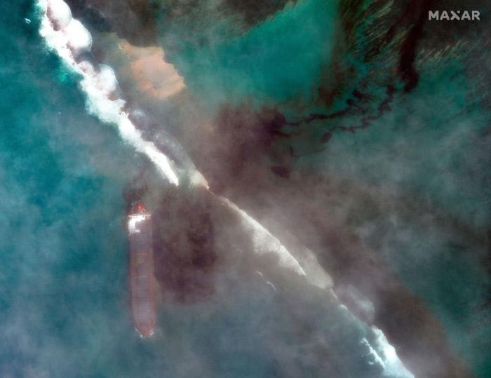 일본 해운회사 쇼센미쓰이(商船三井)의 화물선 ‘와카시오’ 호는 중국에서 브라질로 향하던 중 지난달 25일 밤 모리셔스 남동부 그랑포트 부근 바닷가에 좌초했다. 2007년 건조된 300m 길이의 대형 화물선인 이 배는 파나마 선적으로, 중유 3800t이 실려 있었다. 연료탱크 중 하나가 부서지면서 이달 6일부터 배에 실려 있던 기름이 새어나오기 시작했다. 파손된 탱크에 들어있던 기름 양은 약 1200t이다.