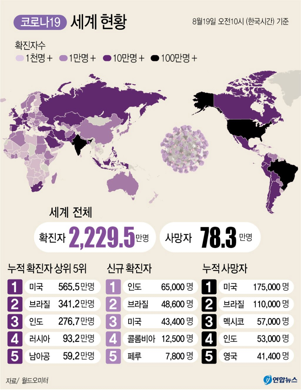 ‘진짜 감염자 수’는 얼마나 될까. WHO 등의 공식 집계에 따르면 19일까지 세계에서 약 2200만명이 감염됐다. 그러나 앞서 미국 질병통제예방센터(CDC)는 10개 도시를 조사한 결과 실제 감염자 수가 공식 통계의 10배가 넘을 수도 있다고 밝혔다.