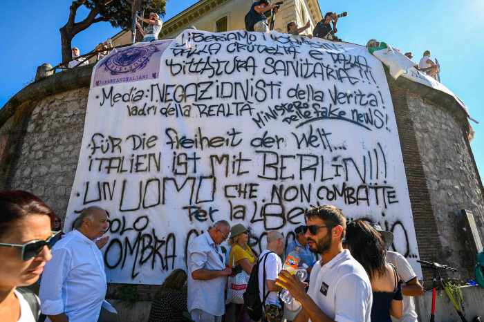 이탈리아 로마에서도 5일 1000명 이상이 모여 마스크 착용과 백신접종에 반대하는 시위를 했다. 극우 정당인 포르차누오바(Forza Nuova·새로운 힘)와 백신 반대론자들이 거리로 나와 ‘정부의 보건 독재’를 비난했다. 일부 시위대는 프란치스코 교황을 악마로 묘사하기도 했다. 바티칸은 명목상 독립국가이지만 로마가톨릭은 프란치스코 교황의 지휘 아래 이탈리아 정부의 방역조치에 적극 협조하고 있다. 교황은 다음달 코로나19 봉쇄 뒤 처음으로 로마를 떠나 자신의 이름을 따온 프란치스코 성자가 살았던 아시시를 방문할 계획이지만, 이 방문에서도 신자들과는 접촉하지 않겠다고 밝힌 바 있다.