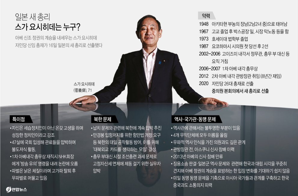 '차기 일본 총리' 정해졌지만...진짜 '스가 색깔'은? (0) | 2020.09.14 |