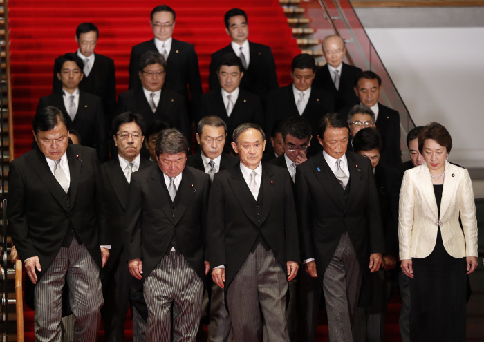 스가 요시히데(菅義偉) 일본 총리는 취임 전부터 줄곧 ‘아베 신조(安倍晋三) 정부의 계승’을 내세워왔고, 16일 발표된 내각도 아베 정부 시절과 별다른 차이가 보이지 않는다. 재무상 아소 다로(麻生太郞) 부총리, 가지야마 히로시(梶山弘志) 경제산업상, 니시무라 야스토시(西村康稔) 경제재생상, 아카바 가즈요시(赤羽一嘉) 국토교통상 등 경제분야 각료들은 한 명도 바뀌지 않았다. 스가 총리는 경제에서도 ‘아베노믹스’를 이어가겠다고 했다.