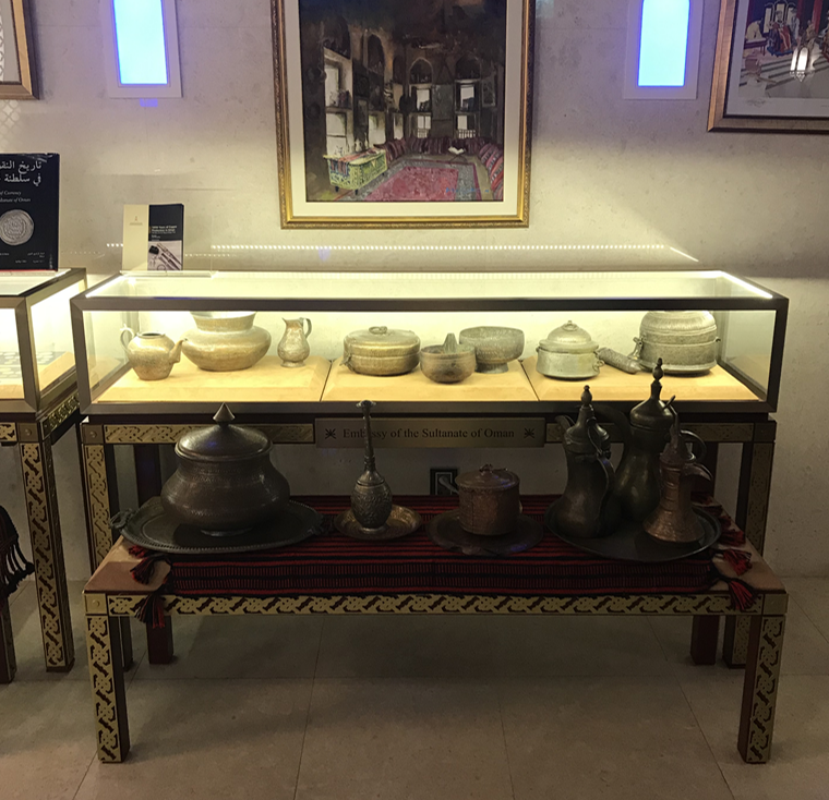 실내도 이쁘죠? 넓지 않은 로비를, 작은 오만 박물관처럼 꾸며놨습니다. 서울에 있는 대사관들을 몇 군데 가봤지만 오만대사관은 특히 아기자기하고 이뻤어요.