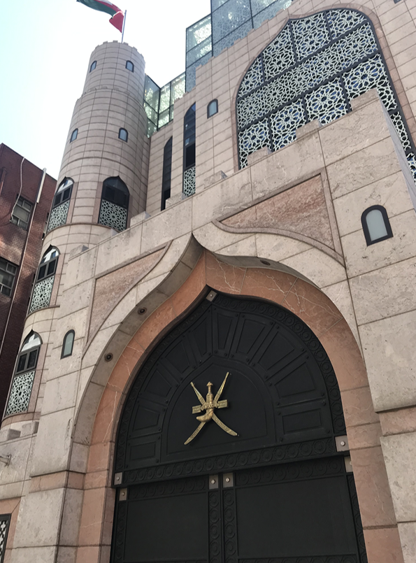 2011년 지어진 대사관은 중앙일보 기사에 따르면 '793㎡ 대지에 지하 3층, 지상 5층 규모'이며 '국내 유일한 아랍풍 대사관'입니다. 한국에서 활동하는 프랑스 건축가 다비드 피에르 잘리콩이 설계했고, 시공은 한국 건축회사에서 했다고 합니다. 대사님께 건물에 대해 여쭤봤습니다. 건축가가 오만을 방문해 현지 건물들을 관찰하고 특색을 살렸다고 설명하면서, 오만 건축물 화집을 보여주셨습니다.