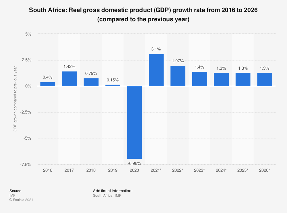 사실 남아공 전체의 경제상황이 좋지 않다. 2019년 구매력 기준으로 남아공의 1인당 GDP는 약 1만2500달러다. 아프리카에서 가장 경제가 발전한 중위소득국가이며 천연자원도 많다. 그런데 경제성장률은 계속 낮아져서 2019년에는 코로나19가 발생하기 전인데도 거의 제로에 가까웠다. 전력 등 기본 인프라도 부족하거나 부실하고 빈부격차는 크다. 인구의 절반이 빈곤선 이하에서 살아간다.
