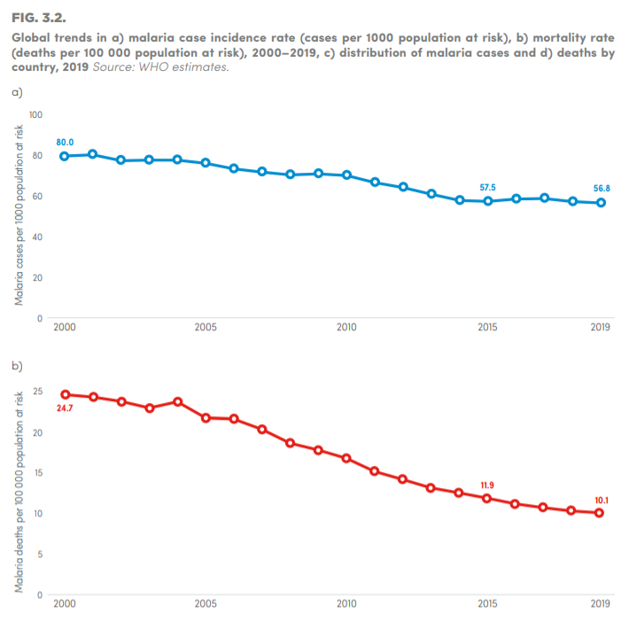 특히 2000년대에 유엔은 말라리아, 에이즈, 결핵 같은 질병을 퇴치하기 위해 드라이브를 걸었다. 유엔이 21세기 첫 15년간 내세웠던 밀레니엄개발목표(Millennium Development Goals, MDGs) 중의 하나가 2030년까지 모든 국가에서 말라리아 전염병을 종식시키는 거였다. 2007년에는 ‘세계 말라리아의 날(4월 25일)’까지 만들었다. WHO는 말라리아 정책자문위원회도 만들고 2013년에는 기부자그룹을 구성한 뒤 백신 개발을 목표로 규정했다. 그러나 완전퇴치 목표시한은 좀 늦춰져서, 2015년에 '2030년까지 말라리아 사망률을 90% 감소시키는 것'을 목표로 제시했다. (빌 게이츠는 2040년까지 세계에서 말라리아를 없앨 수 있을 것으로 예측했다)