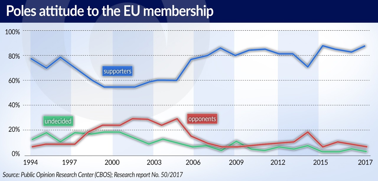 폴란드 국민들은 EU에 남고 싶어하며, 우파 정부와 EU의 갈등이 커져 사실상 퇴출당하는 사태가 올까봐 걱정하는 쪽이다. 폴란드는 2004년 EU에 가입한 이래 유럽을 무대로 경제를 키웠다. 게다가 최근 몇년 새 러시아가 옛 소련권 국가들을 규합하거나 심지어 벨라루스나 몰도바 같은 비EU권 동유럽국들을 다시 장악하려는 움직임을 보이고 있다. 러시아를 가장 경계하는 나라가 폴란드다. 폴란드인들은 EU를 국가 안보의 필수적인 부분으로 보고 있다고 로이터통신은 전했다. 올 6월과 7월에 실시된 유로바로미터 조사에서 폴란드인들은 자국 정부보다 EU를 거의 2배 이상 신뢰하는 것으로 나타났다.