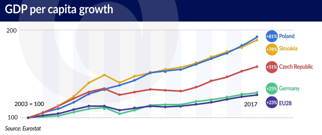 영국은 경제규모가 세계 6위이며 다른 교역상대국이 많지만 폴란드는 다르다. 경제규모로는 세계 22위이고 나머지 EU국가들에 많이 의존하고 있다. 2018년 폴란드 수출의 거의 80%가 EU로 갔고, 수입의 약 60%가 EU 내부 시장에서 왔다. 유로스타트(EU 통계국)에 따르면 2004년 가입 당시 폴란드인의 1인당 소득은 EU 평균의 45%에 그쳤는데 2017년에는 70%로 올라갔다. 그만큼 EU가 성장에 기여한 것이다.