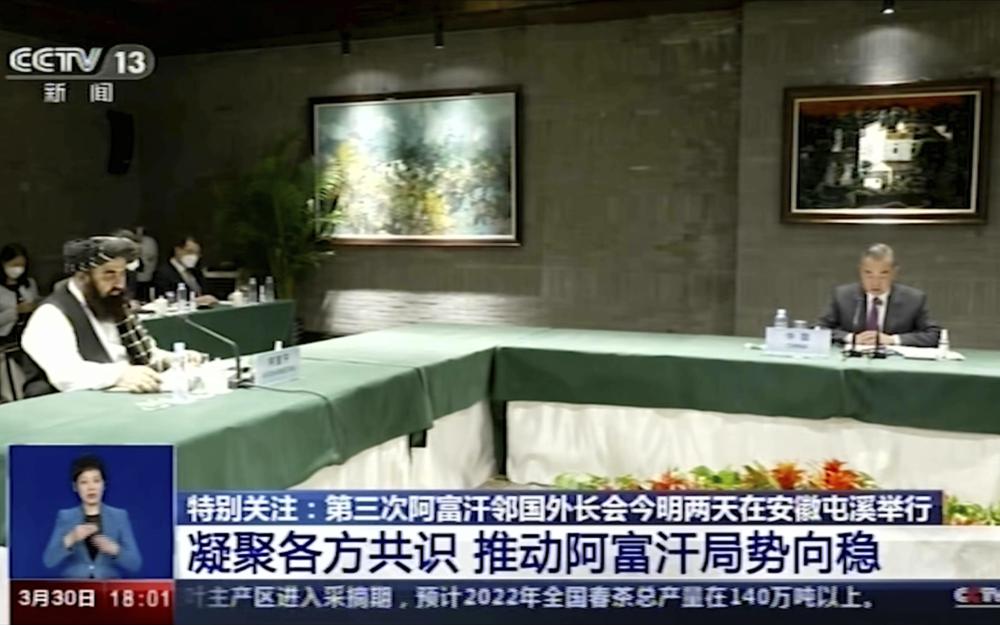 아프간 인접국 외교장관 회의. 작년 8월 탈레반 재집권하고 그 다음달인 9월에 파키스탄 주재로 화상회의. 이어 10월에는 이란 테헤란에서 두번째 회의. 미국과 동맹국들이 아프간 재정지원 끊으면서 아프간 경제 나락으로. 특히 주변국들은 난민 유입과 극단세력 움직임 등을 경계. 그래서 아프간 안정 문제 논의하는 자리를 만든 것. 중국 코로나19 경계하느라고 외진 도시에서 개최.