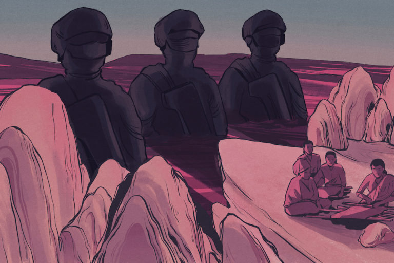 땅이 망가지고 물이 더러워지고 바위가 쪼개져나가고 숲이 잘라지는 그런 위기가 정말로 마을을 덮쳤다. 이들이 기대어 사는 무티스 산은 대리석, 망간, 금이 나오는 곳이고 주변엔 유전과 가스전도 있다. 그러나 자원은 자연이 주는 축복이지만 때로는 저주가 되기도 한다. 특히 지구 상 대부분의 힘 없는 토착민들에게는 저주가 될 때가 많다. 몰로 사람들이 그런 토착민들 가운데 하나였다. 자신들의 풍요로운 땅에서 이익을 얻는 것이 아니라, 스스로의 동의나 금전적인 보상도 없이 조상들의 땅이 파헤쳐지고 삶이 망가지는 일을 겪어야 했기 때문이다.