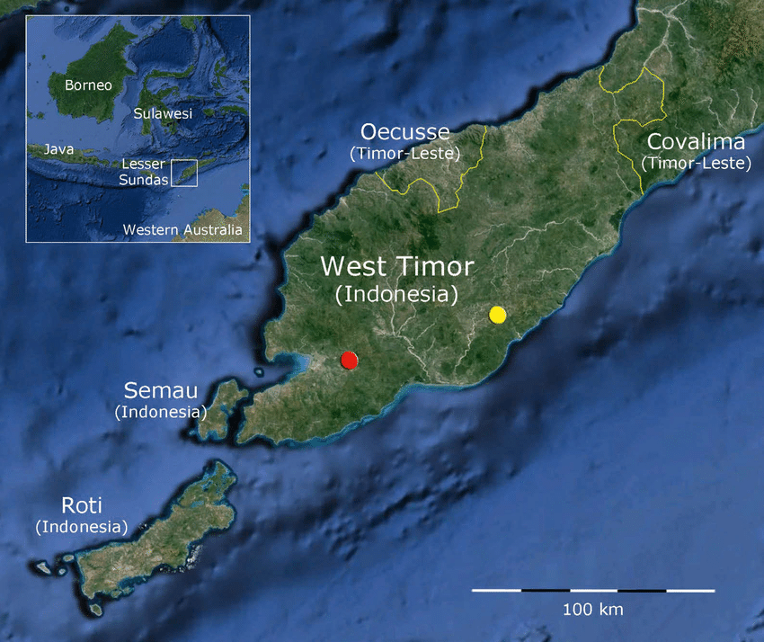 인도네시아와 호주 사이에 있는 티모르. 면적 3만km2의 동서로 길쭉한 섬이다.