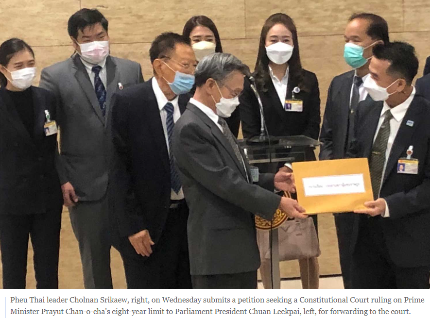 쁘라윳 총리는 육군참모총장이던 2014년 잉락 친나왓 당시 총리가 반대 세력에 밀려나게 되자 그 틈을 타 쿠데타를 일으켰다. 계엄령을 선포한 뒤 권력을 잡아 총리직에 올랐고, 2019년 총선으로 집권을 연장했다. 그 이태 전인 2017년 군부 쿠데타 정권은 개헌을 했는데 그 헌법에 따르면 총리의 임기는 아무리 길어도 8년을 넘길 수 없다. 야권에서는 2014년 총리가 된 뒤부터 계산하면 올해 8월 24일로 임기가 끝나는 거라고 주장해왔다.