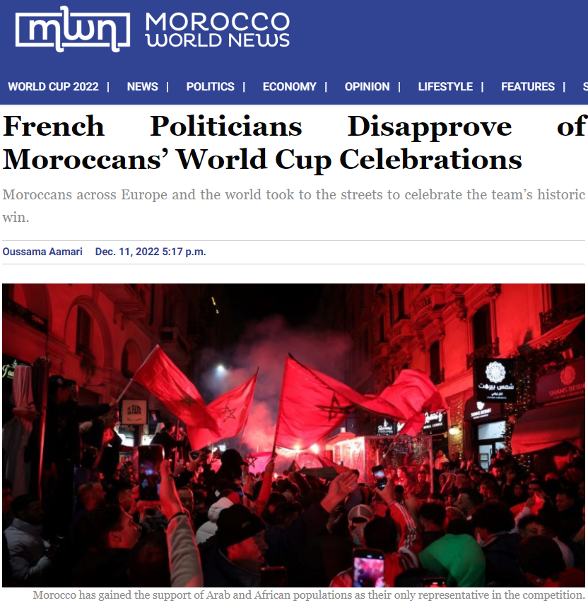 모로칸월드뉴스, ‘French Politicians Disapprove of Moroccans’ World Cup Celebrations’