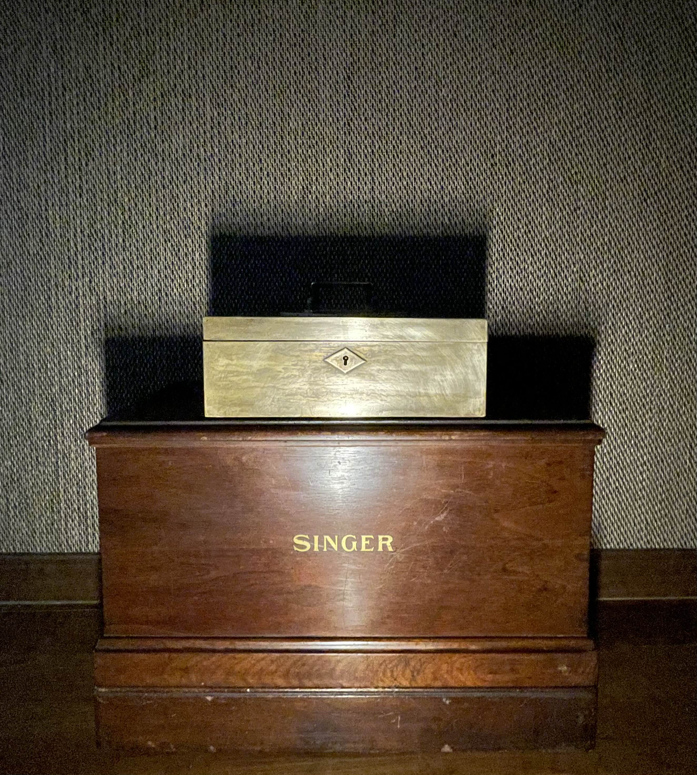 놋쇠함을 받쳐 놓은 재봉틀은 그 유명한 싱거 미싱이다. 무려 엄마의 외할머니가 쓰시던 거라고 하니 이것도 족히 100년 가까이 된다.
