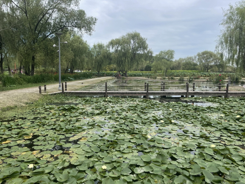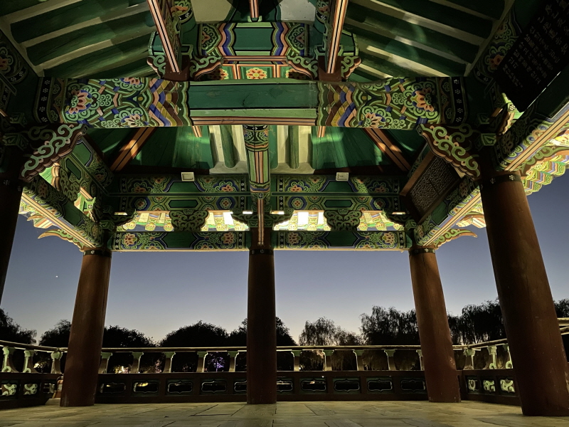 코로나 때여서 그랬는지 여행객은 별로 없었지만 잘 다듬어진 산책로, 슬슬 걸어 올라가서 백마강을 내려다보며 선선한 강바람을 맞을 수 있는 낙화암, 그 주변 돌아다니다가 만난 누각들, 맑고 시원한 밤에 둘이 누각에 누워 단청과 검은 하늘 바라보던 기억, 궁남지의 햇살과 연꽃, 밤이 되니 역시나 더 좋았던 호수 가운데 정자, 정말이지 우리 외에는 단 한 명의 관광객도 없었던 정림사 터와 좀 썰렁하지만 꽤 좋았던 부처님, 역시나 관광객은 씨가 말랐는지 둘이만 돌아다녔던 왕릉원...