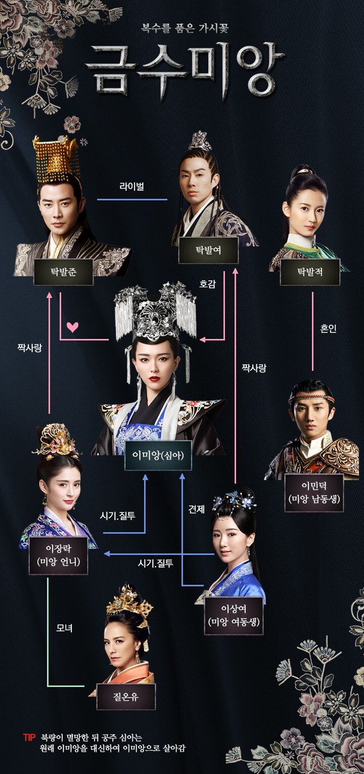 여주가 하드캐리 하는 것으로 유명했던 <금수미앙>. 미앙 역의 탕옌은 이 드라마 뒤에 고구마 역할 전문배우 뤄진과 결혼했다. 이 드라마에서도 역시나 뤄진은 고구마. 이거 볼 때 욘양이 초딩이었는데, 탁발여 역할로 나오는 우젠하오가 좋다고 해서 황당했던 기억이 난다. 우젠하오=원조 유성화원 F4, 1978년 생이란 말이지 ㅎㅎ