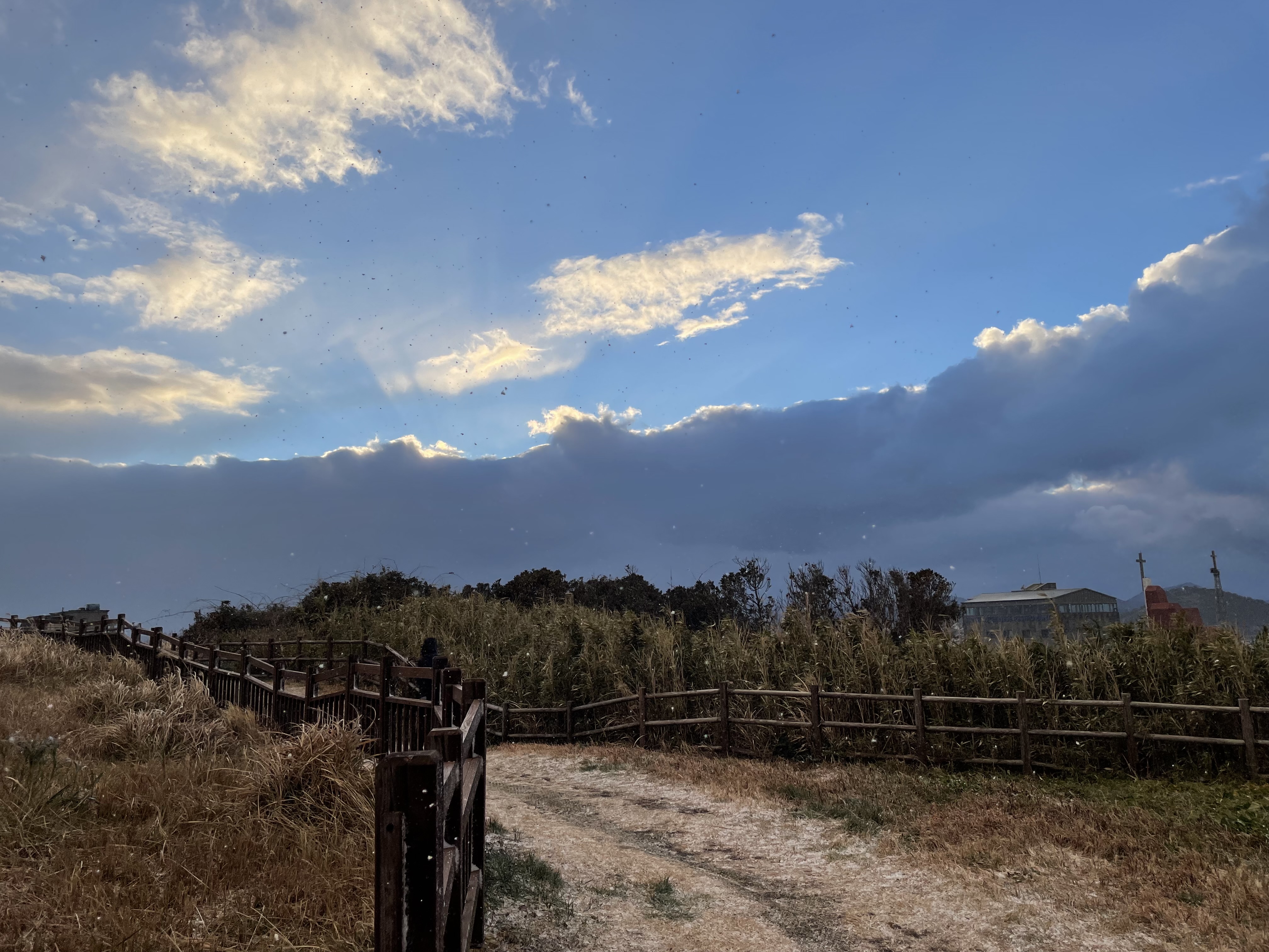 이번에 그 옷(=바람막이)의 위력을 절감했다. 두껍지 않아서 입으면 그리 따뜻하지 않은데, 안에 따뜻한 거 입고 그거 입고 움직이면 체온이 밖으로 안 나가니까 두께에 비해 엄청 따뜻한 효과. 또 중간에 어떤 할아버지께서 귤을 잔뜩 주셔서 캥거루옷 앞주머니에 한가득 넣고 다녔다. (마지막날에는 귤이 없었고 살 곳도 없어서 귤농장 입구 바닥에 떨어진 귤을 주워 먹었다).