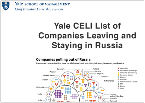 ‘중국은 미국의 러시아 제재에 협력하지 않고 있다’라는 기사를 예로 들어볼게요. 먼저 질문을 던져 봅니다. 중국은 러시아에 맞선 경제제재 전선의 걸림돌일까? 그렇다면 어느 정도나? 우크라이나 전쟁에서 중국의 공식 입장은 ‘중립’이죠. 필요에 따라 러시아를 지지하는 발언을 하지만 실제로는 거리를 두고, 그러면서도 제재에 동참하지 않은 채 교역은 이어왔습니다. 미국 예일대 경영대학원은 우크라이나 침공 이후 세계 1,000여개 기업들을 대상으로 러시아와의 거래를 축소 혹은 중단했는지 조사해 공개하고 있습니다.