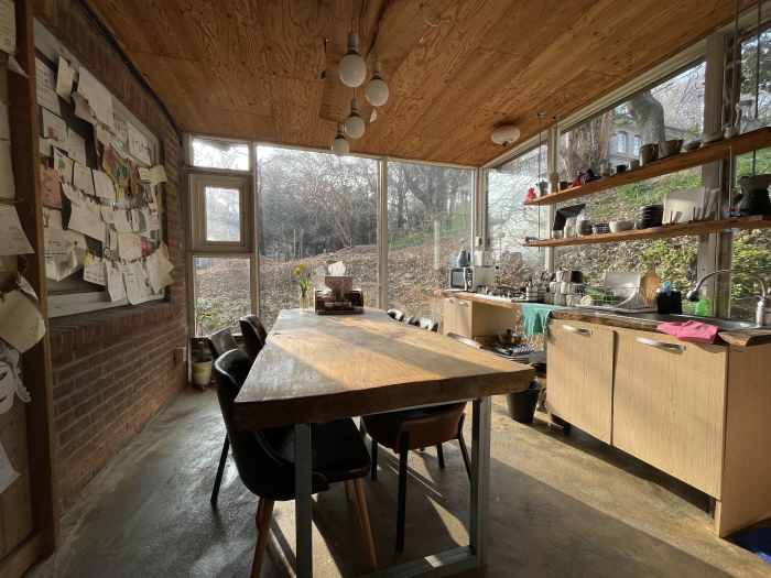 1970년대에 지어진 유치원 건물을 카페&서점으로 개조했는데 정말 이쁘다.