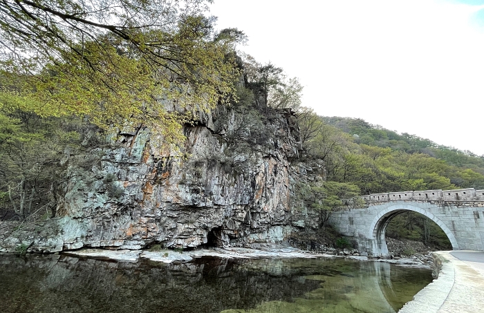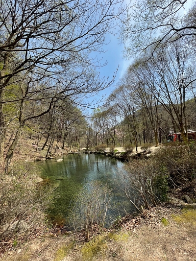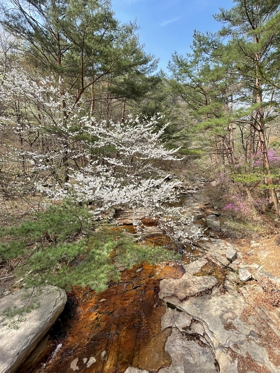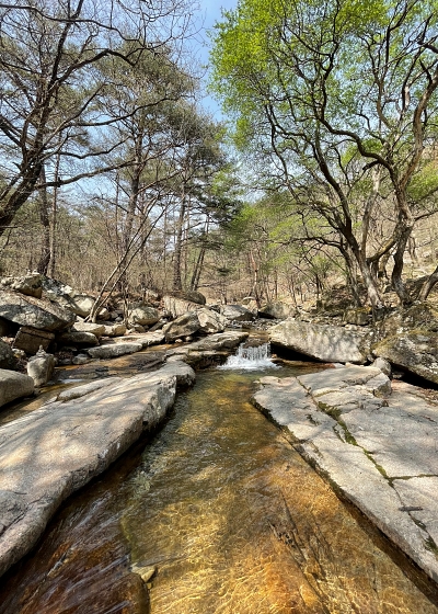 저기는 그냥 계곡이지만, 중간에 발 담글 수 있게 수로를 만들어놓은 곳이 있어서 잠시 더위를 식히기도. 4월인데 이 날은 햇살이 꽤나 뜨거웠다.